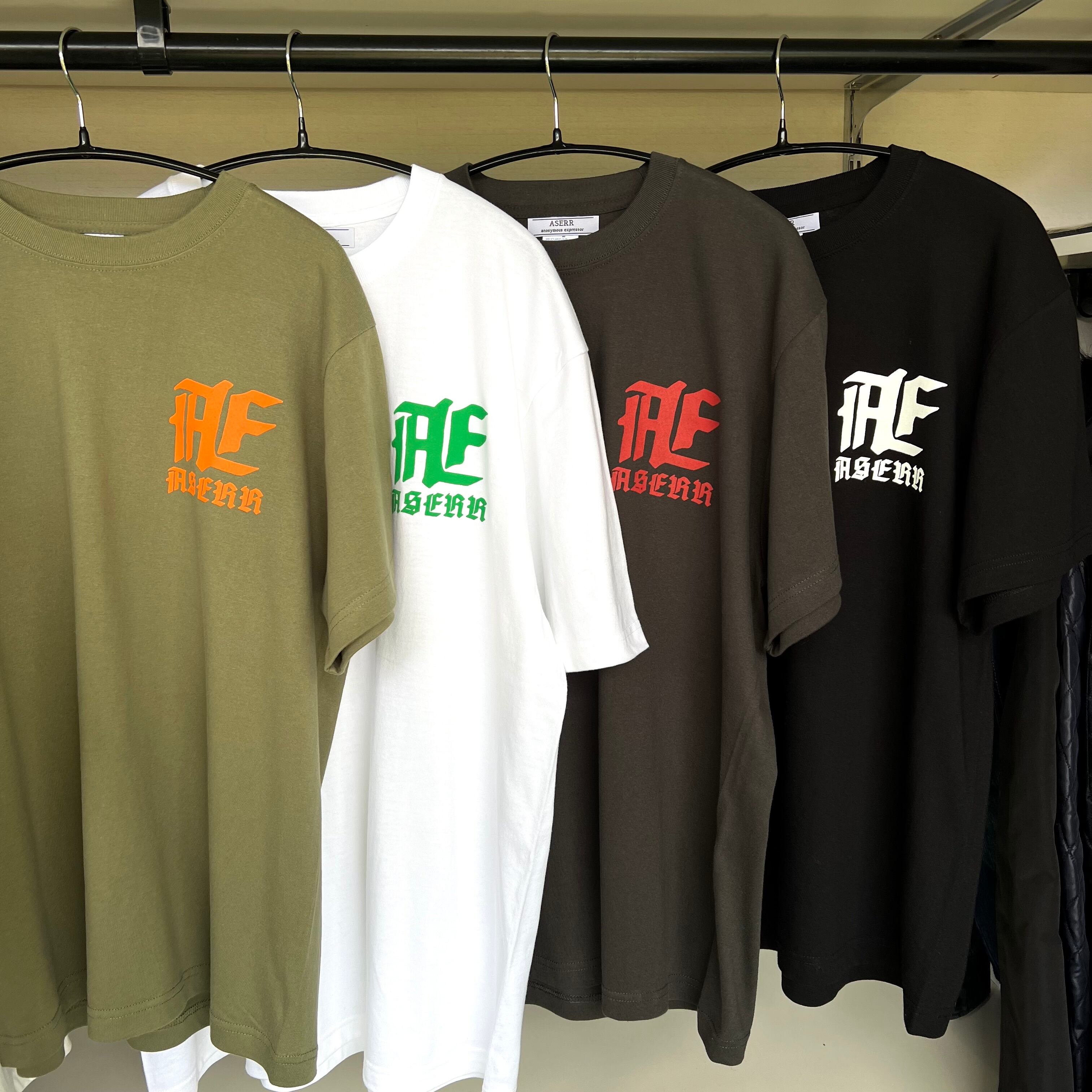 フロントはメインロゴ、バック襟元はダメージボックスロゴで共にワンポイントでシンプルにまとめたアイテム。